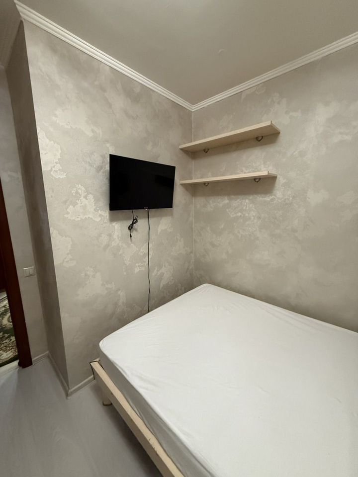 Раздельный СУ. Есть 2 телевизора. Смарт ТV в спальне и кабельное на кухне , стираная машина, полотенцесушитель, холодильник, плита, духовка, микроволновка.
