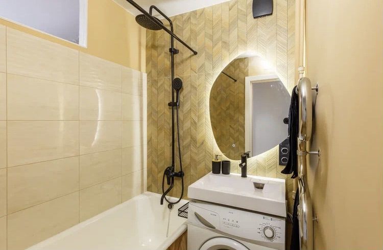 В ванной — машинка автомат, новые трубы, смесители, тропический душ и вентилятор с датчиком влажности,